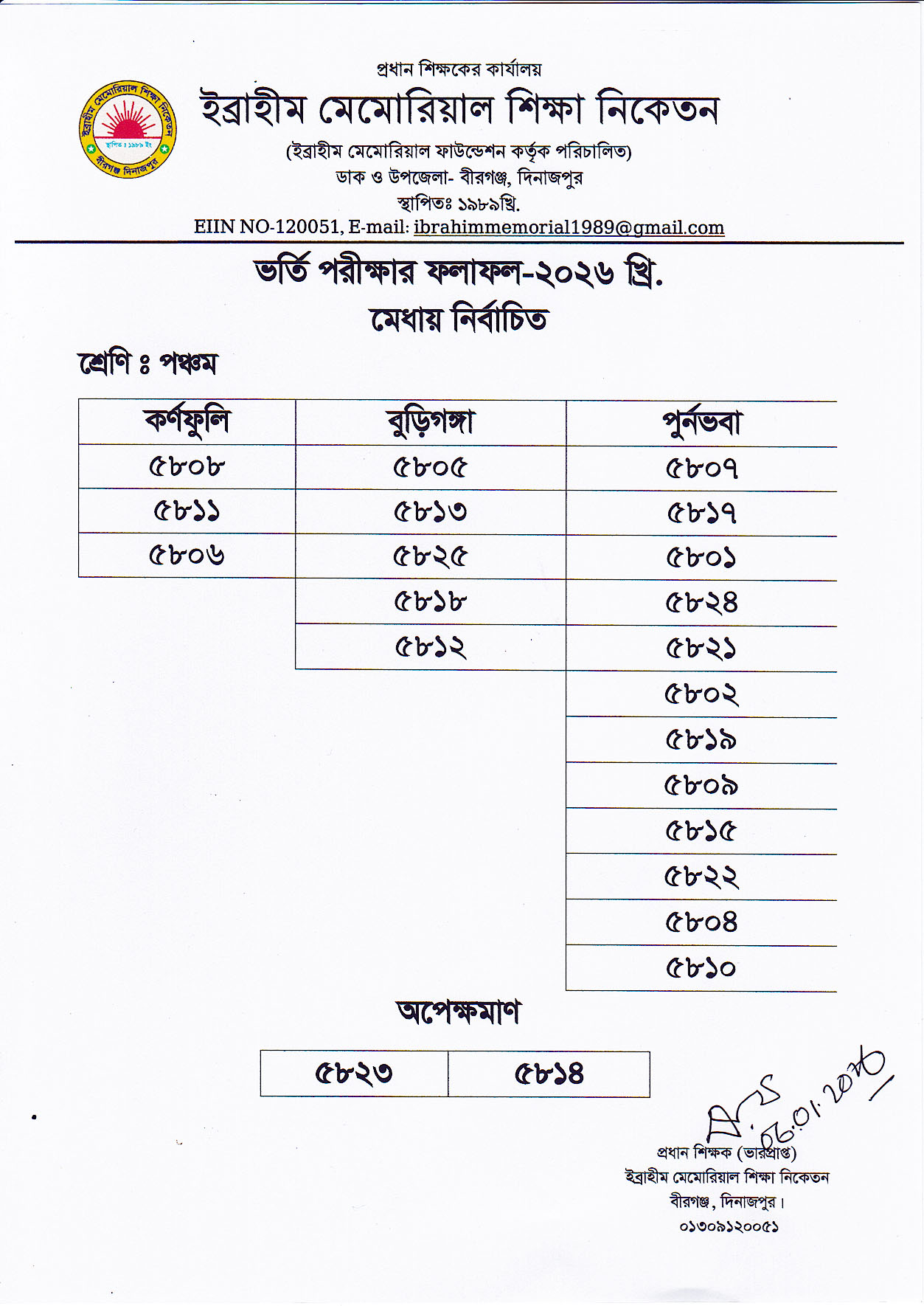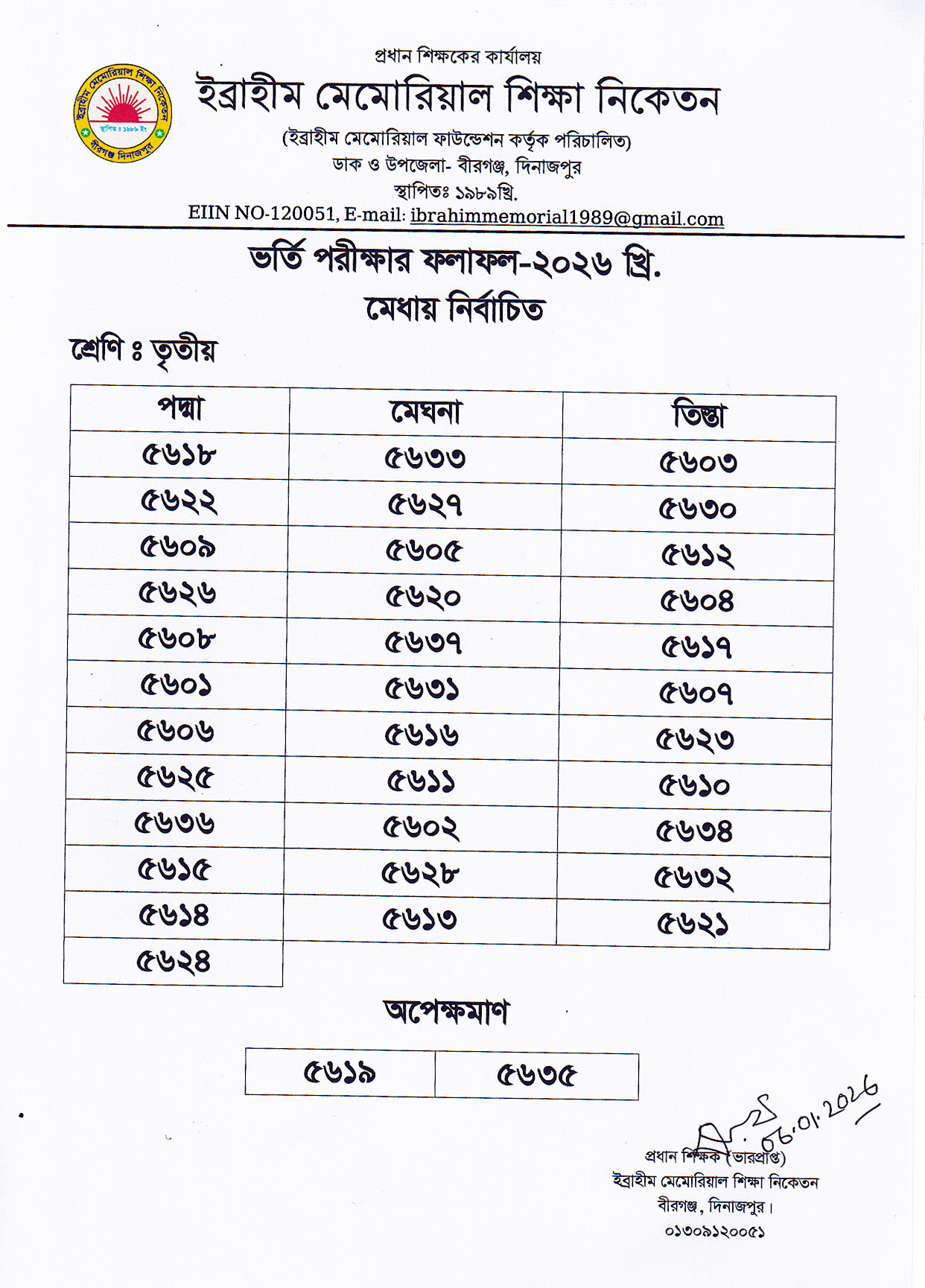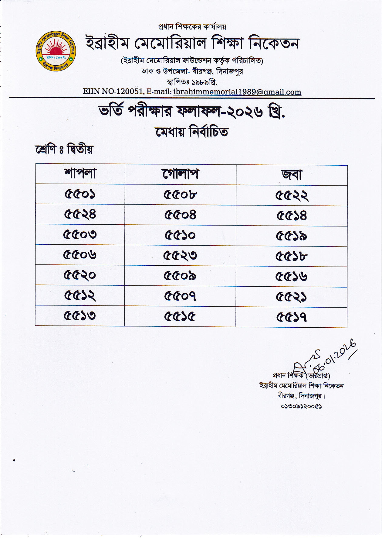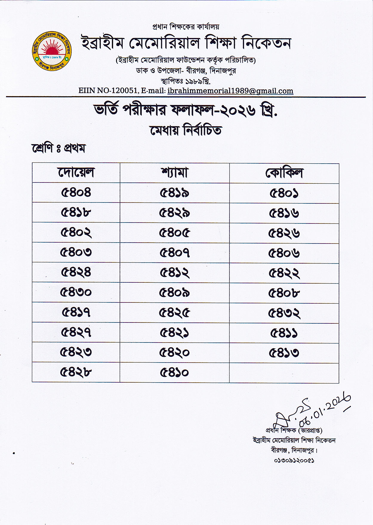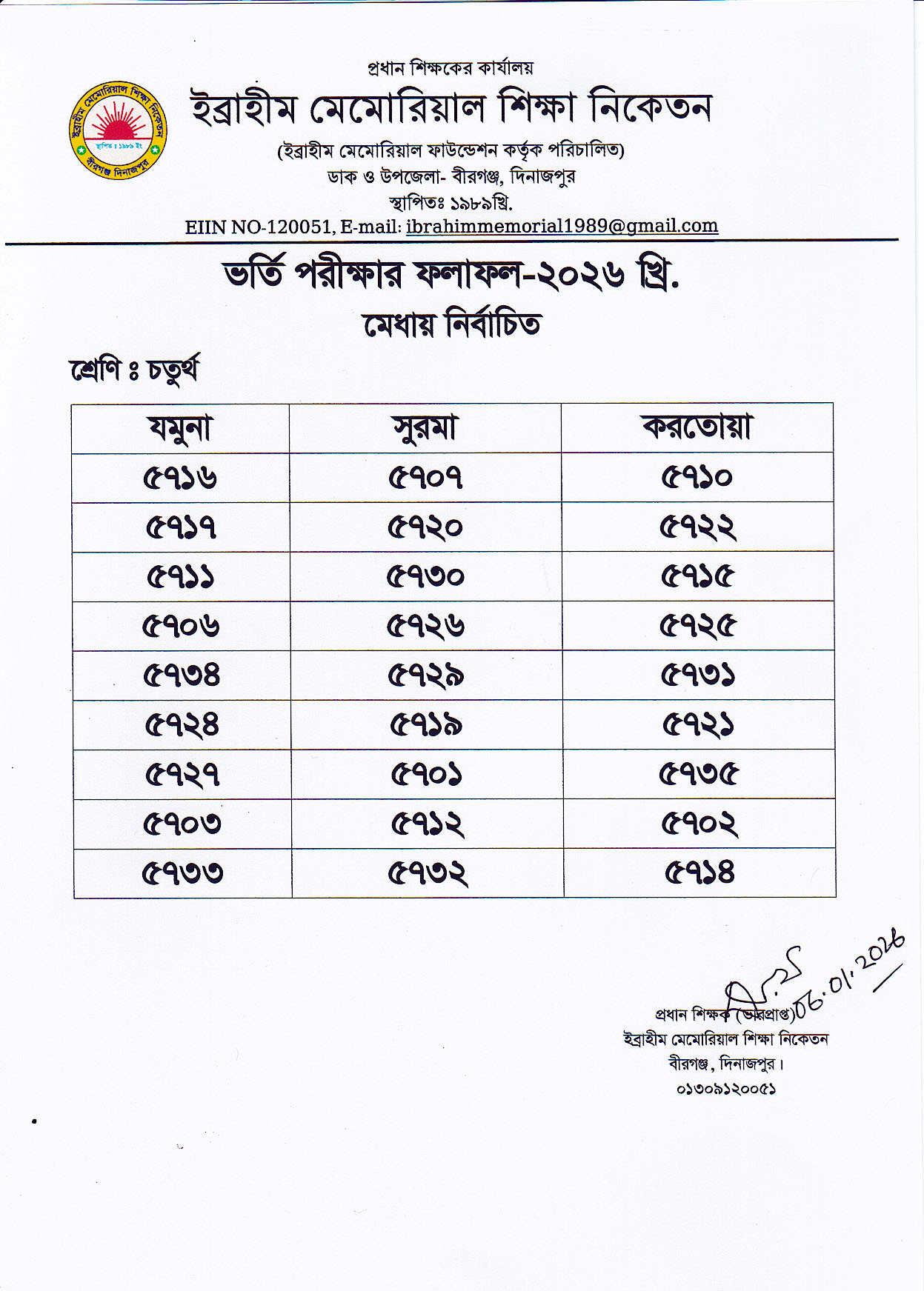ভর্তি পরীক্ষার ফলাফল-২০২৬খ্রি.