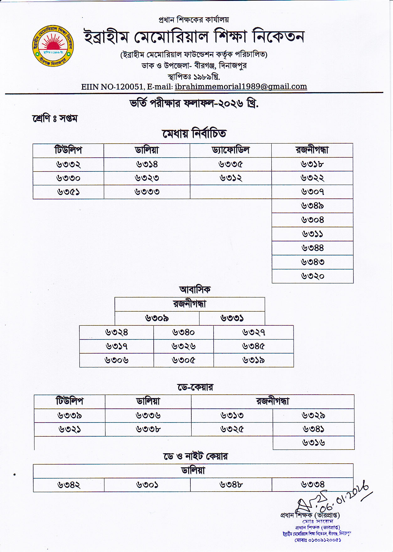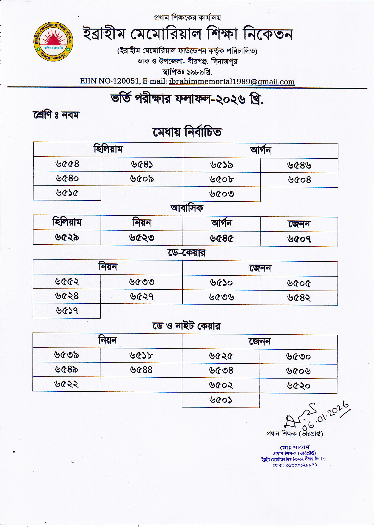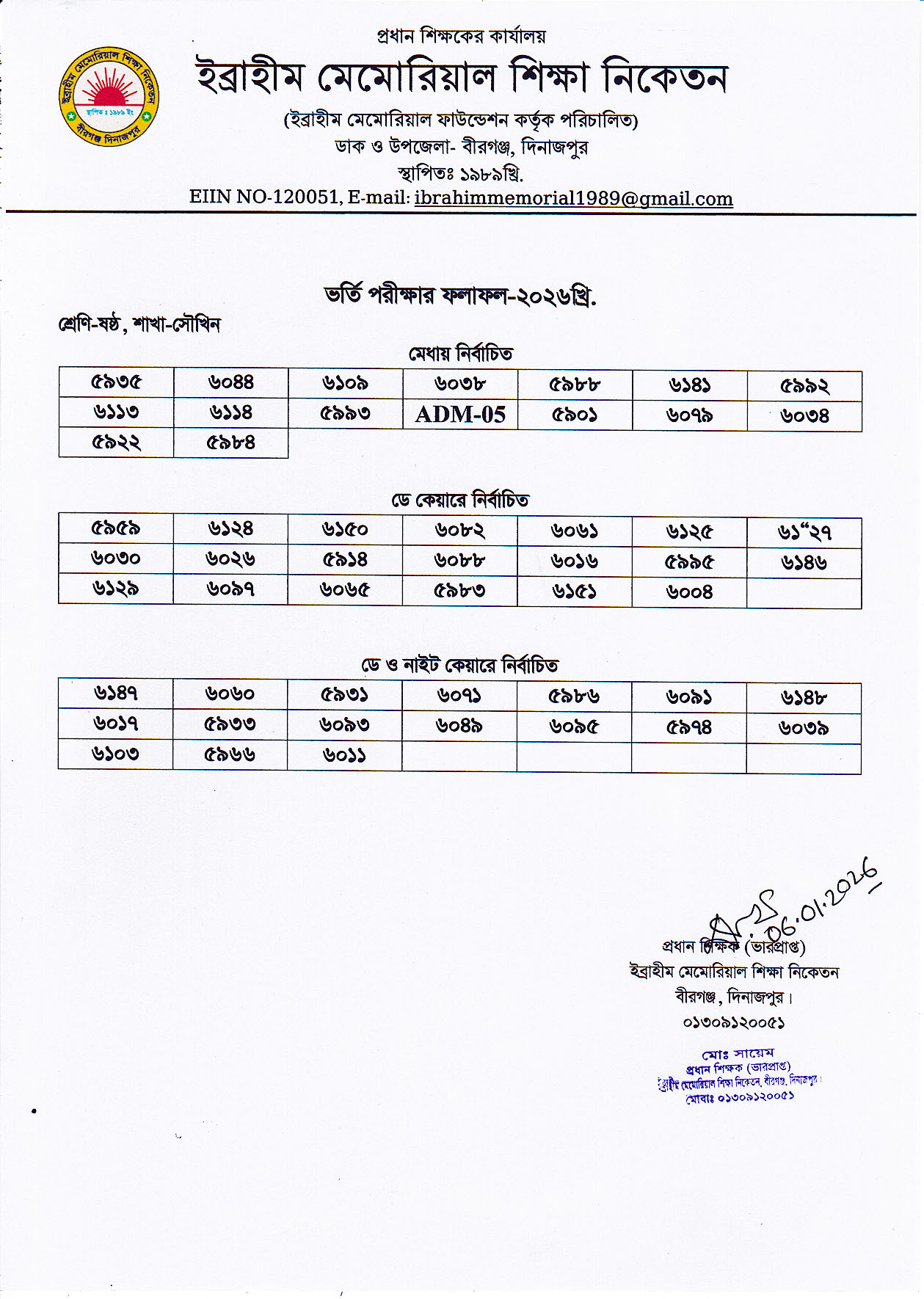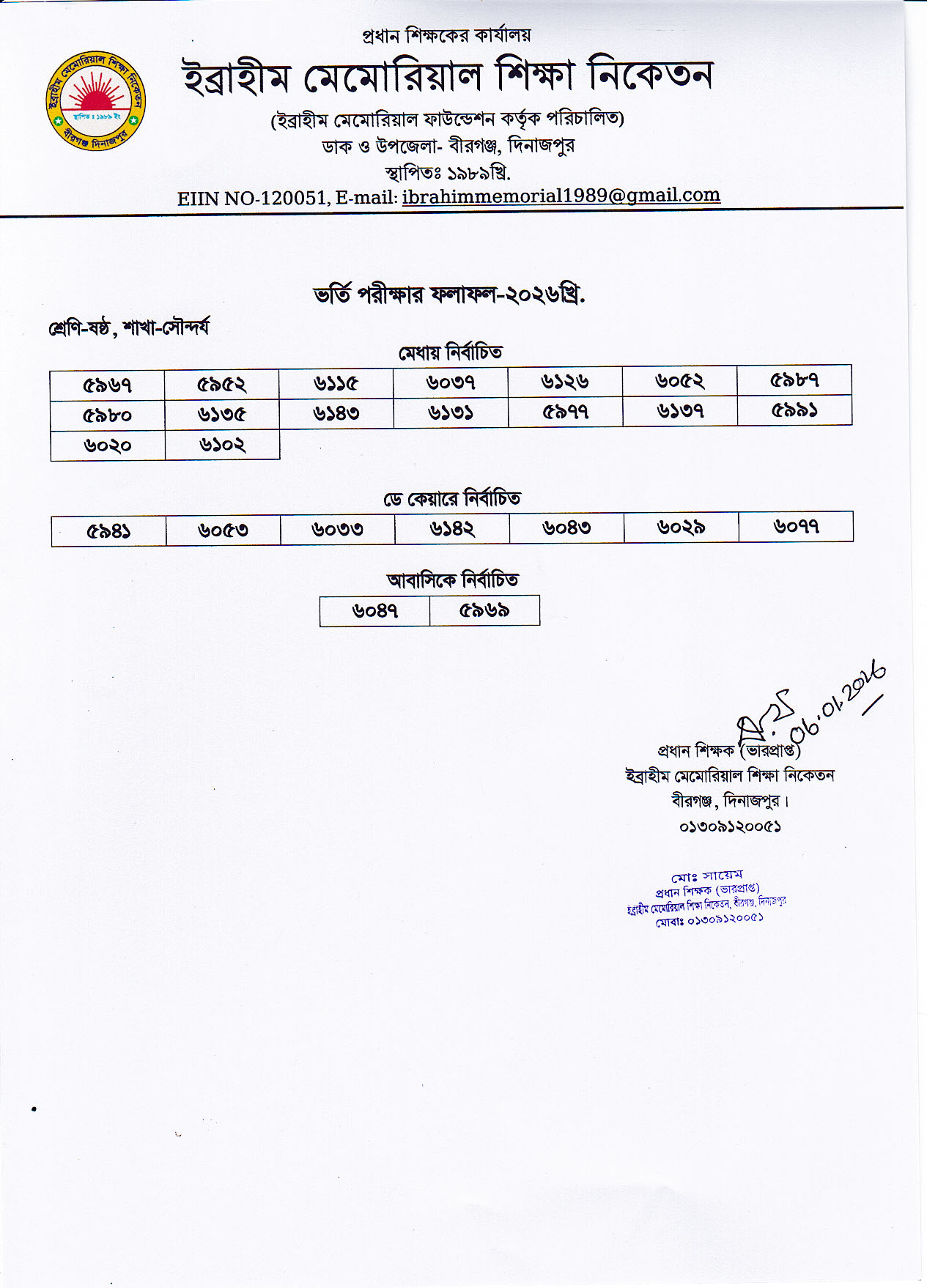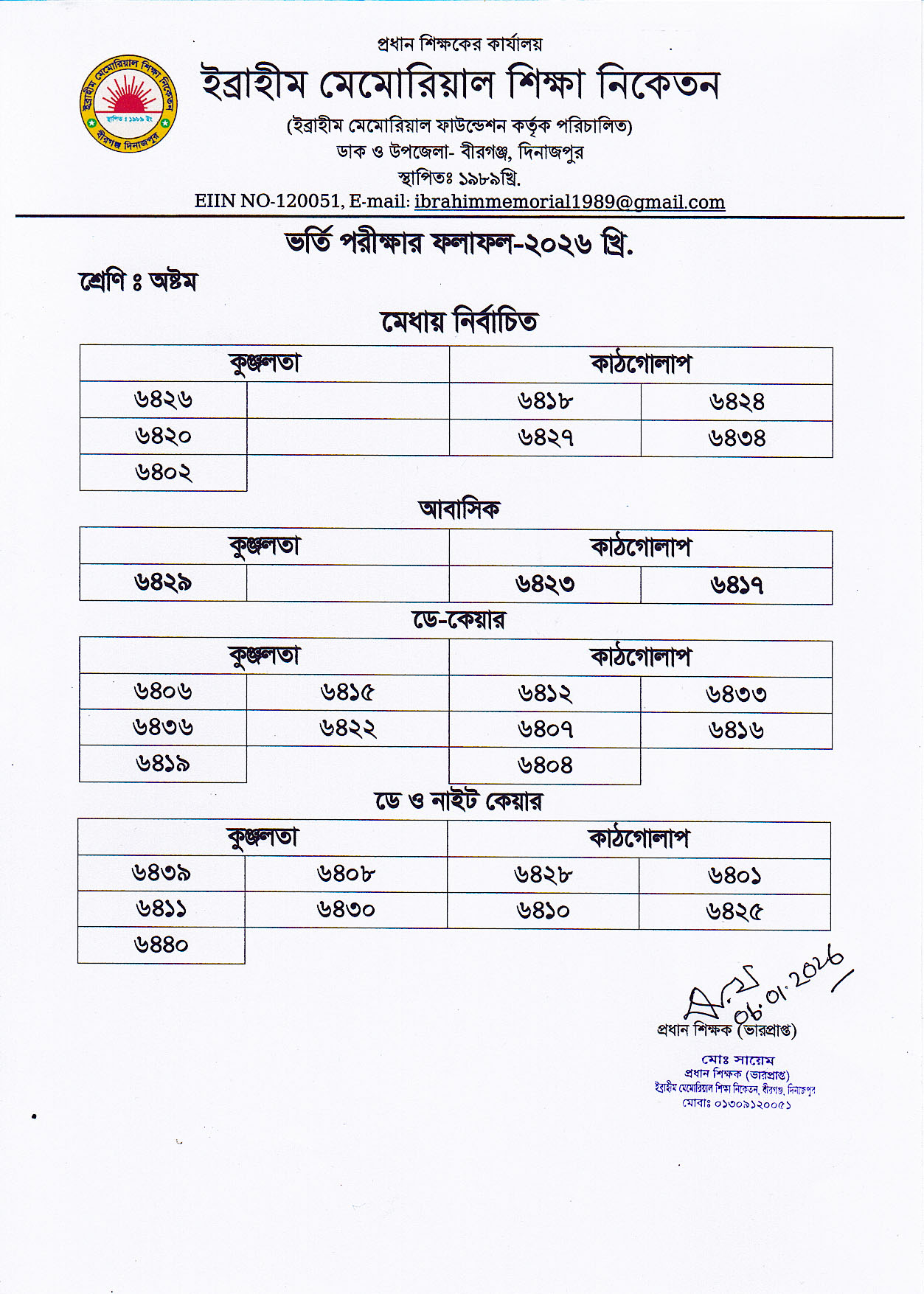 ভর্তি পরীক্ষার ফলাফল-২০২৬খ্রি.